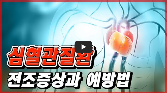 이와 관련해서 아래 영상의 경우 심혈관 질환 전조증상 정보를 제공해줍니다.