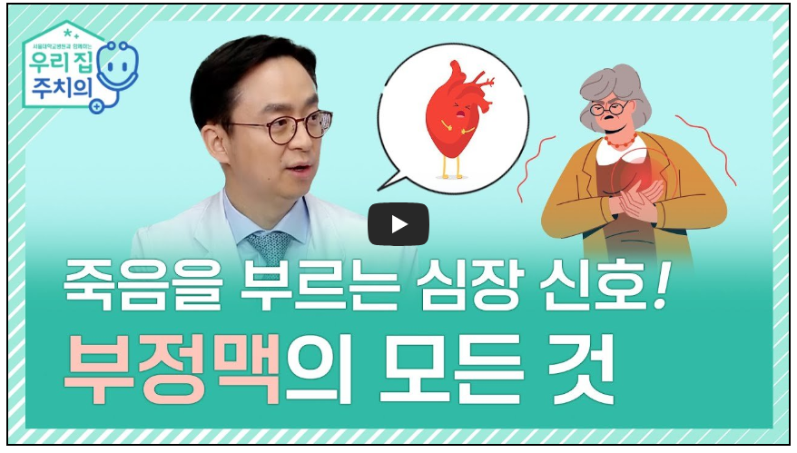 시간내서 아래 영상을 시청하시고 올바른 부정맥 증상 정보를 확인하시기 바랍니다.